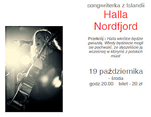 W Magazynie Cafe w Złotowie 19 października o godz. 20.00 wystąpi songwriterka i pieśniarka z Islandii - Halla Nordfjord. Utalentowana Islandka być może już wkrótce stanie się gwiazdą.... Tym bardziej warto przyjechać na jej złotowski koncert.