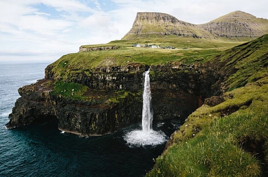 Na zdjęciu: wieś Gásadalur. Do 2006 r. w izolacji. Dostępne wówczas opcje komunikacji: łodzie wciągane ze skał, śmigłowiec, nogi (fot. Marc Zimmer)